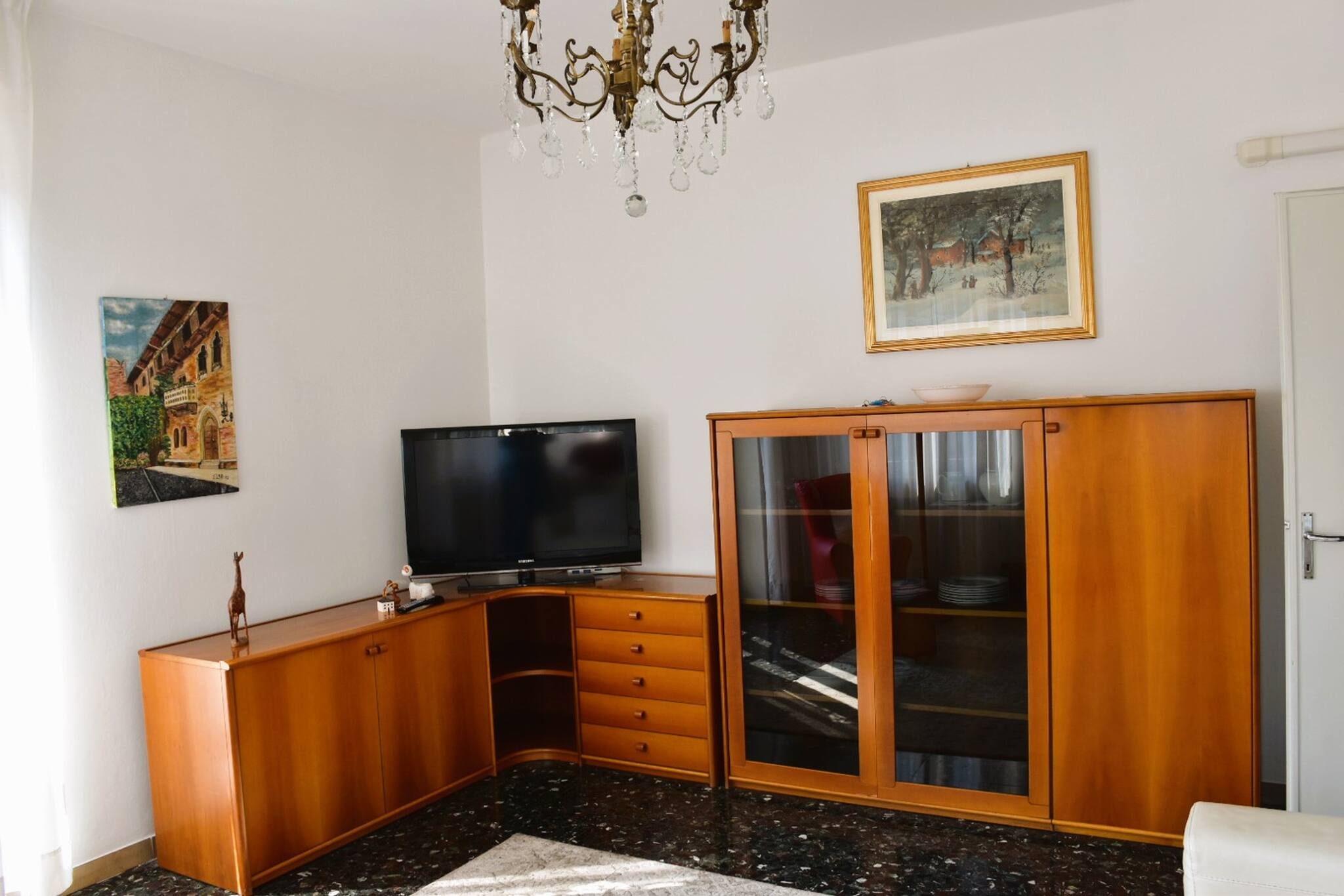 A poche centinaia di metri dal centro storico di Garda, Casa Leopardi è un appartamento di circa 100 mq in una casa bifamiliare: ubicato al 2° piano, (38 gradini con montascale per diversamente abili se necessario). Molto spazioso e luminoso, l'appartamento è dotato di doppi vetri, pavimenti in piastrelle. Ingresso con disbrigo, sala con divano, poltrona, tv digitale terrestre, accesso al terrazzo a “L” attrezzato con tende elettriche e parziale vista della Rocca di Garda e del lago. Cucina abitabile con zona cottura separata (4 fuochi gas, forno, frigo/freezer + altro freezer separato, microonde, doppio lavabo), tavolo allungabile e tv digitale terrestre. Zona notte: lavabiancheria in armadio nascosto in corridoio, camera matrimoniale con tv digitale terrestre (vista colline), camera con letto matrimoniale con parziale vista lago. Bagno con doccia. Cassaforte. Aria condizionata con split in ingresso e nella zona notte. Nell'androne delle scale si possono depositare le biciclette.