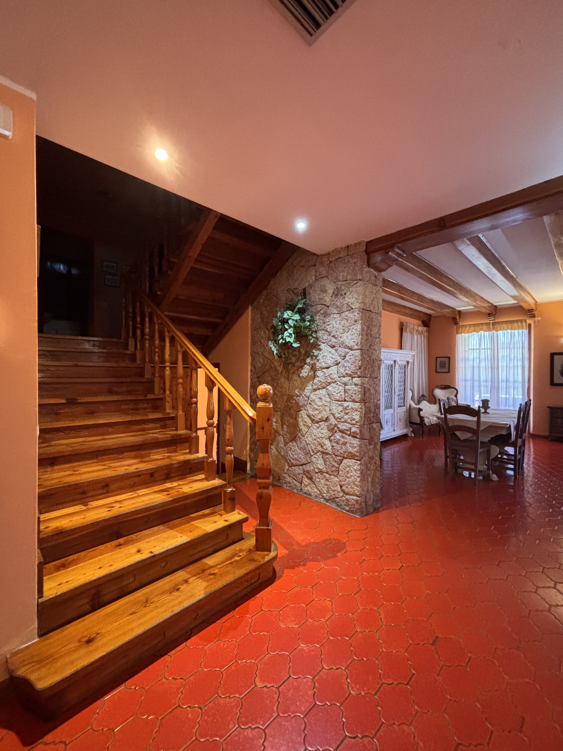 Dall’ingresso si entra in una grande area open space: da un lato un ampio salotto con camino e porte che si aprono direttamente sulla veranda, il giardino e la piscina panoramica recintata, dall’altra parte, la sala da pranzo e dietro di essa la cucina completamente attrezzata su un lato, un bagno con doccia sull’altro lato. Le porte si aprono sul patio posteriore più piccolo. Dalla sala, alcuni gradini portano al primo piano, dove ci sono due camere da letto (una con porta laterale sul giardino), un bagno con doccia e un’altra camera da letto con vista lago e un bagno privato con doccia / vasca . Ancora qualche scalino e c’è un’ampia anticamera dotata di due culle per neonati e un fasciatoio. Su questo livello ci sono tre camere da letto e un bagno con doccia, due delle camere da letto (entrambe con un letto supplementare) godono della migliore vista sul Lago.