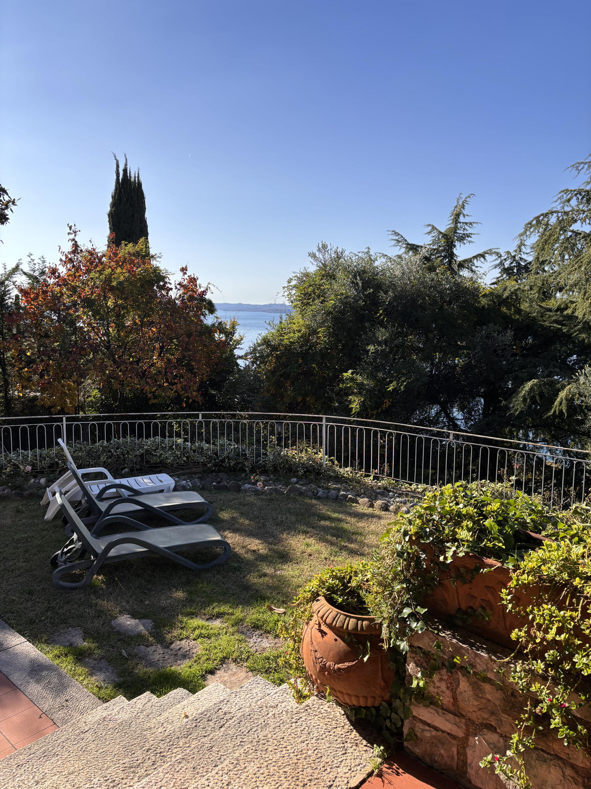 Salendo da Torri del Benaco, sulla strada che sale al paese di Albisano, Villa Margiò è nascosta tra gli uliveti, in una splendida posizione panoramica, con una fantastica vista sul Lago di Garda. La villa dispone di un giardino terrazzato e in pendenza con molti alberi ombrosi che fiancheggiano la strada dal cancello d’ingresso al parcheggio, con spazio per quattro veicoli.