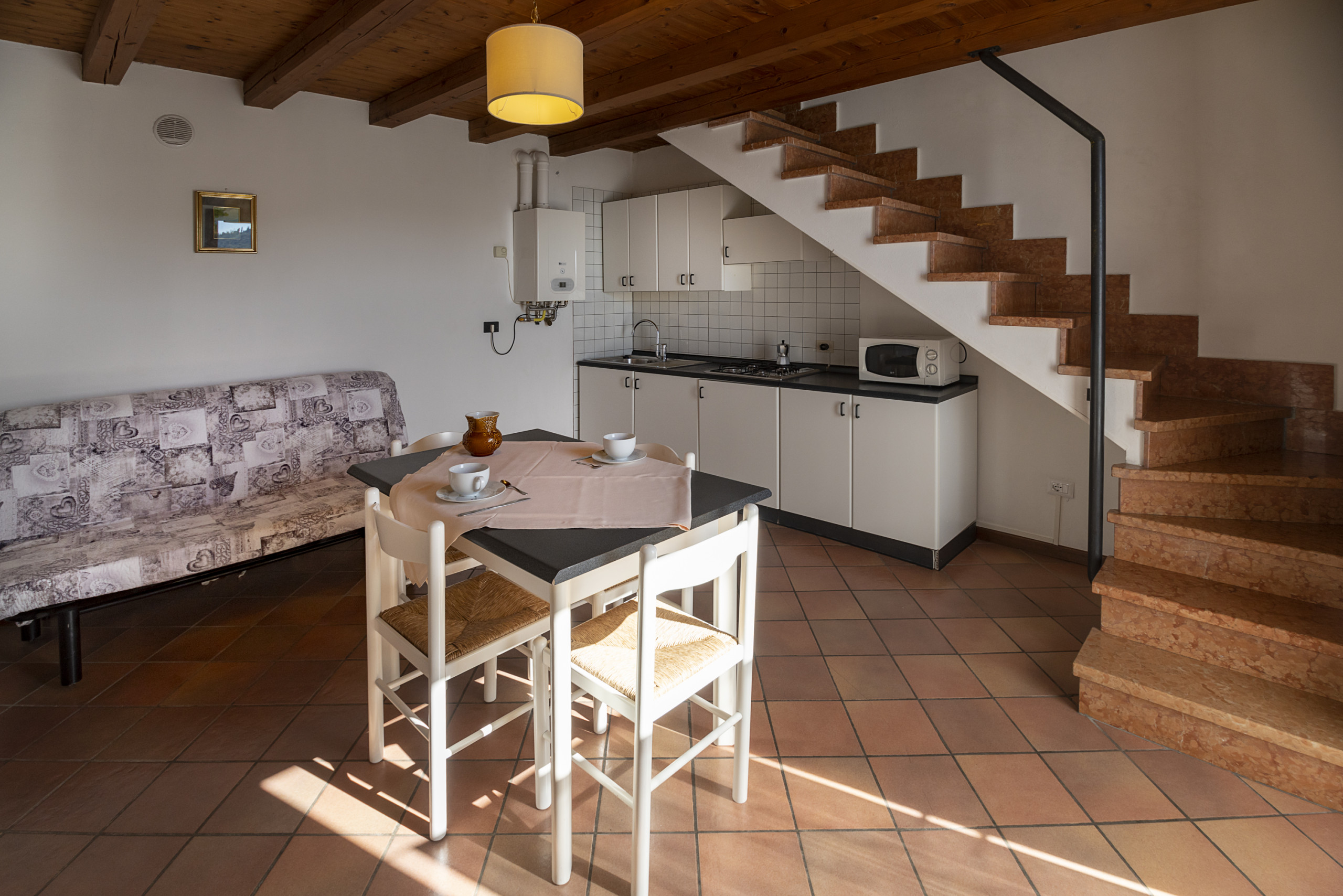 Apartment 04 is located on the first floor and is distributed over two levels.