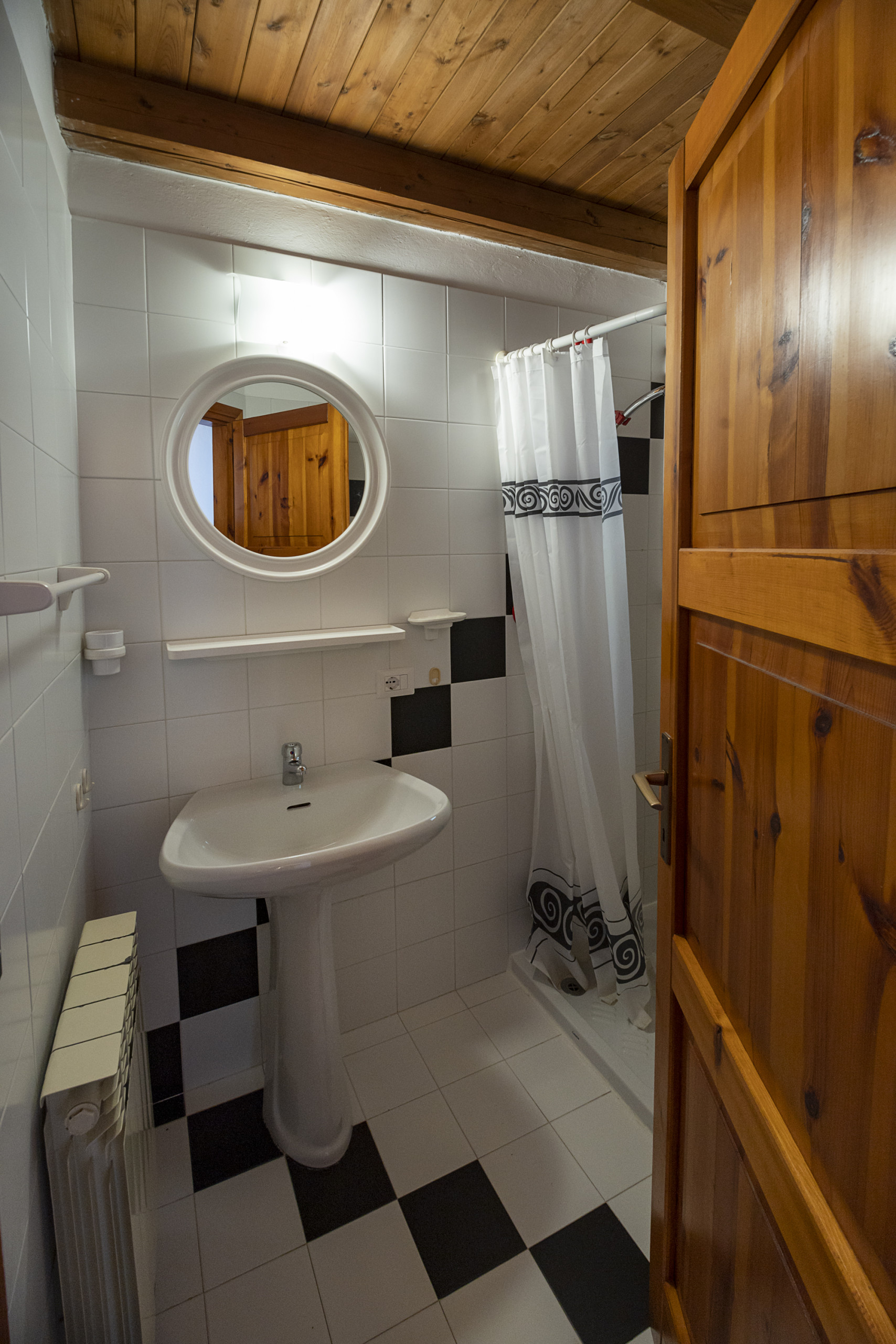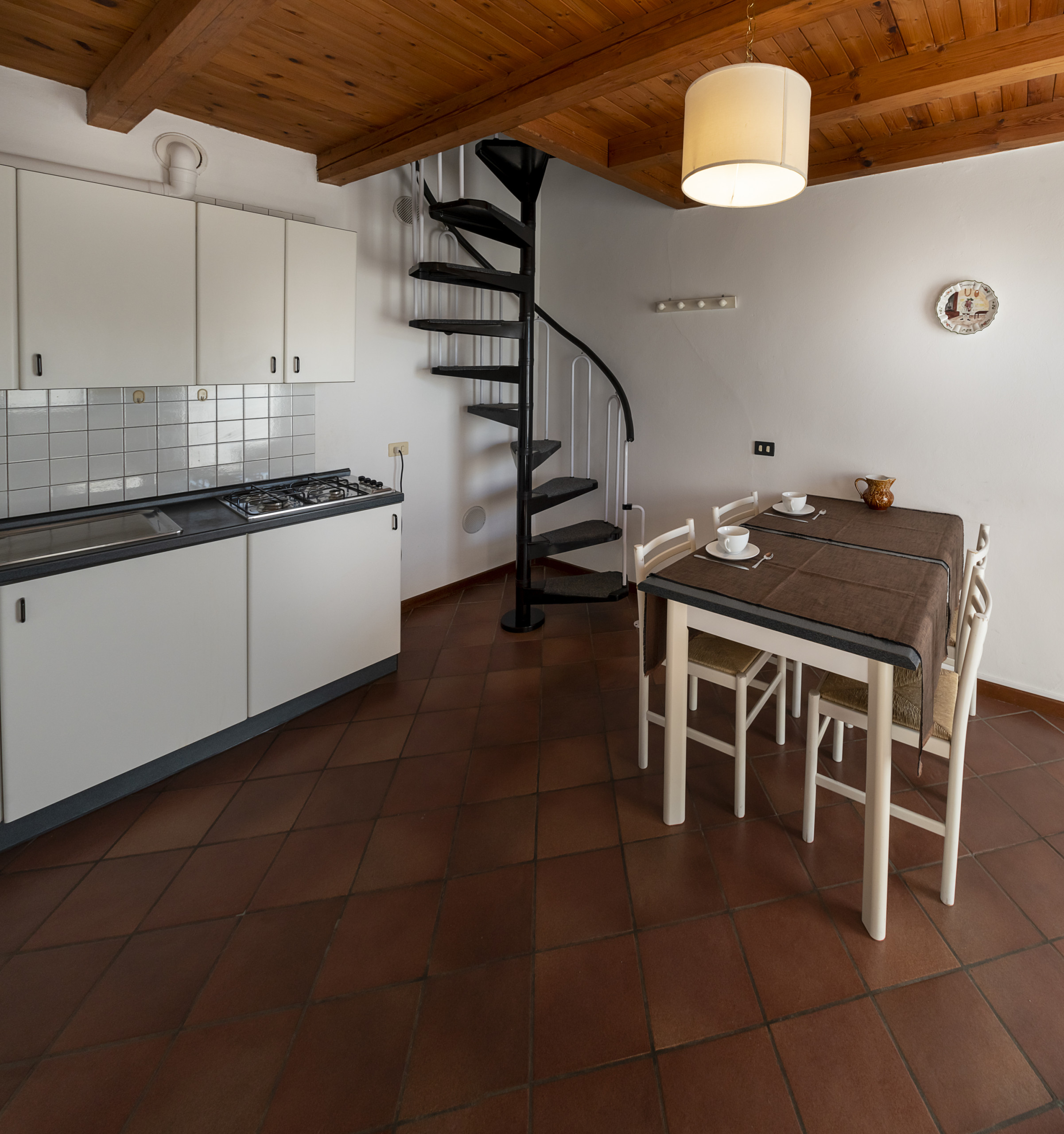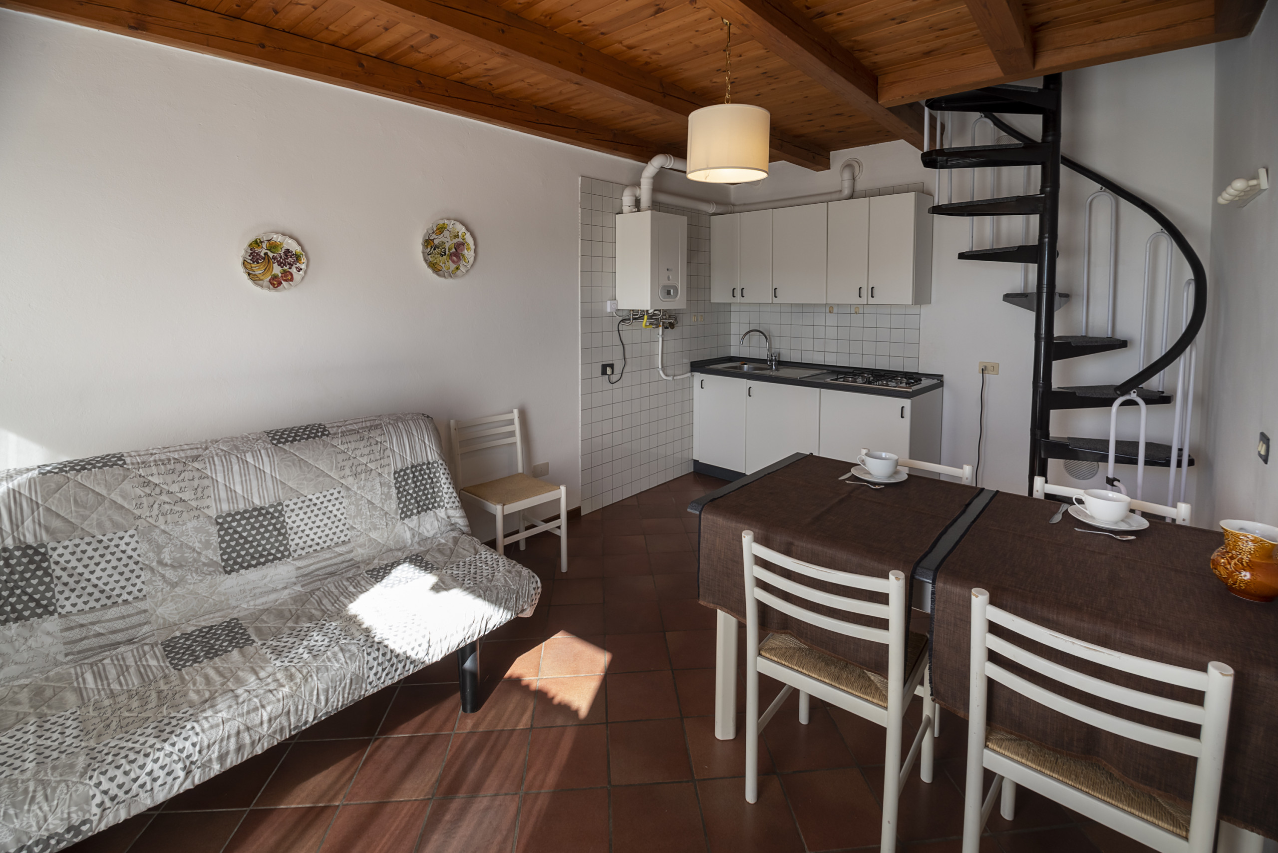 Inside this three-room flat, we find: entrance, kitchen/living room with sofa bed, on the first floor a double bedroom, bathroom with shower, and on the top floor another double bedroom.