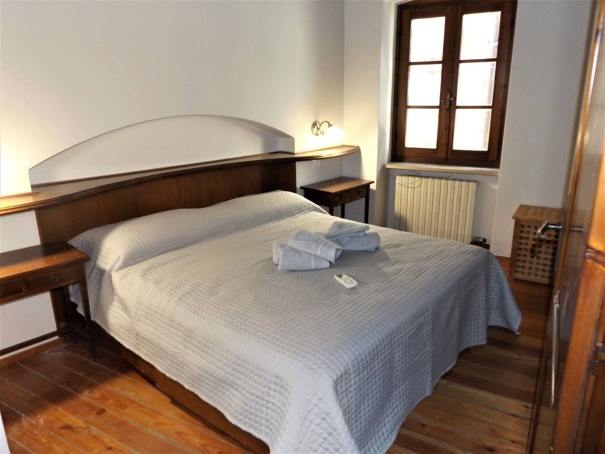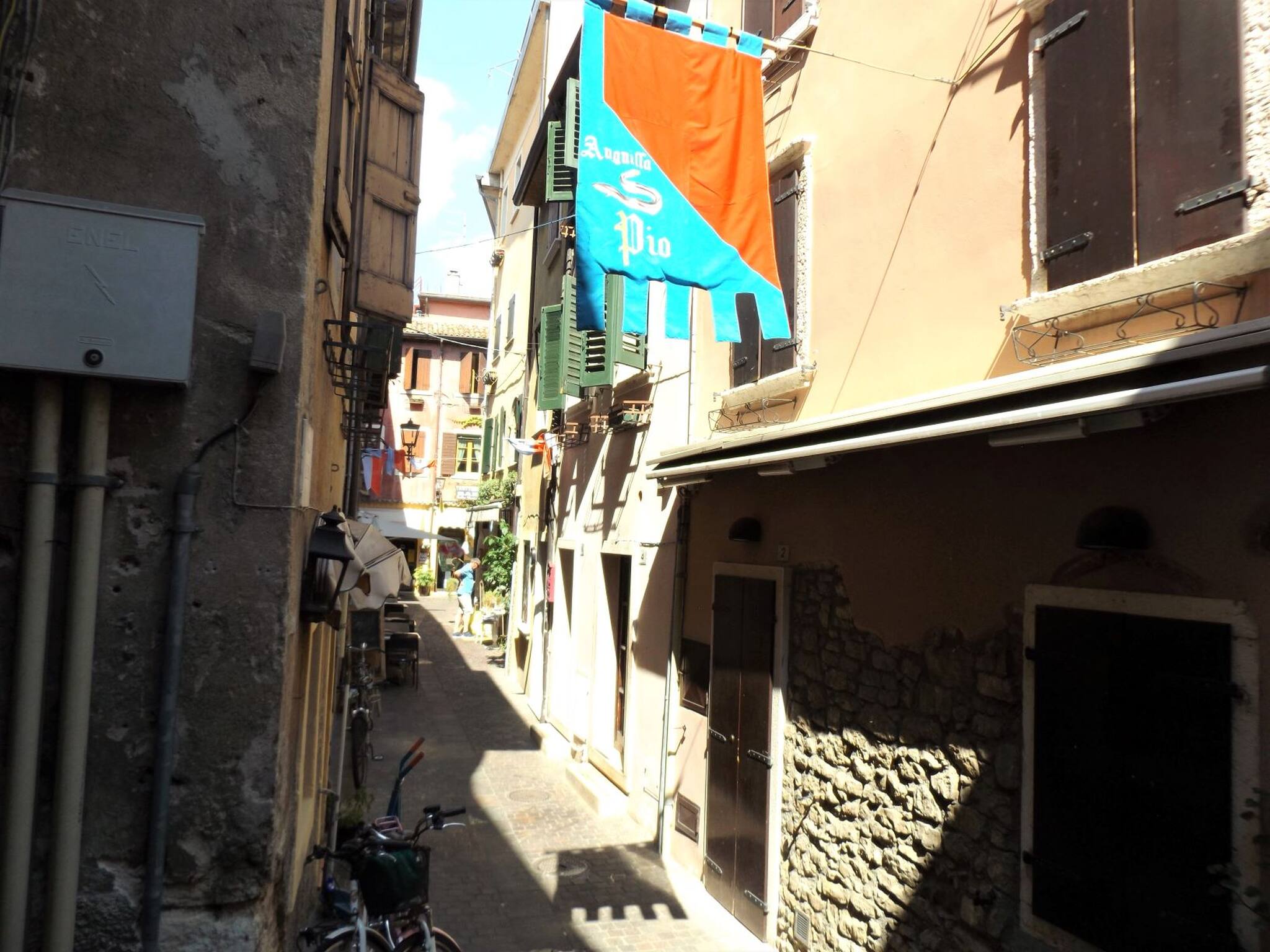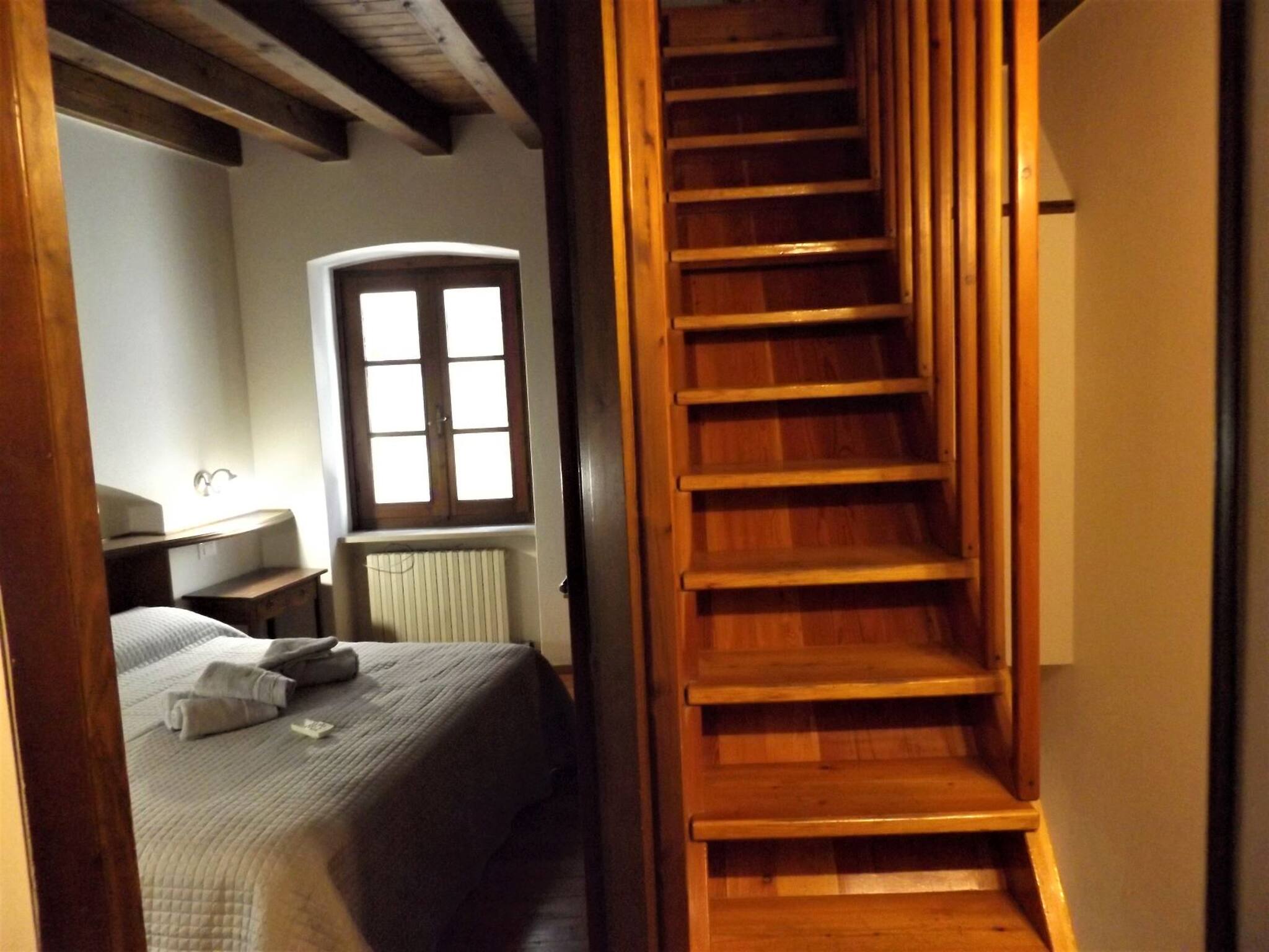 A few steps from the lake and in the heart of Garda's historic centre, the characteristic Casa Catullo develops over three levels, recently renovated and furnished. The house overlooks two sides: on one side the alley, which is entered through a wooden door screened by an embroidered curtain; on the other side the interior of the village, with its colourful houses, balconies, terraces and roofs. The three levels are connected by a beautiful wooden staircase. On the ground floor there is the entrance and space to leave bicycles inside the house, safely. On the first floor there is a double bedroom, a room with bunk beds and a bathroom with shower. On the second floor there is the living area, with dining table, single sofa bed, television and kitchen corner, fully equipped (fridge-freezer, electric hob, microwave): the top floor overlooks an exclusive terrace that dominates Garda's historic centre, equipped with outdoor table and chairs, sun shade and a beautiful fireplace where you can cook! A few steps away are restaurants and venues of all kinds, the lakefront and the beautiful beaches of the village that gives its name to the lake.