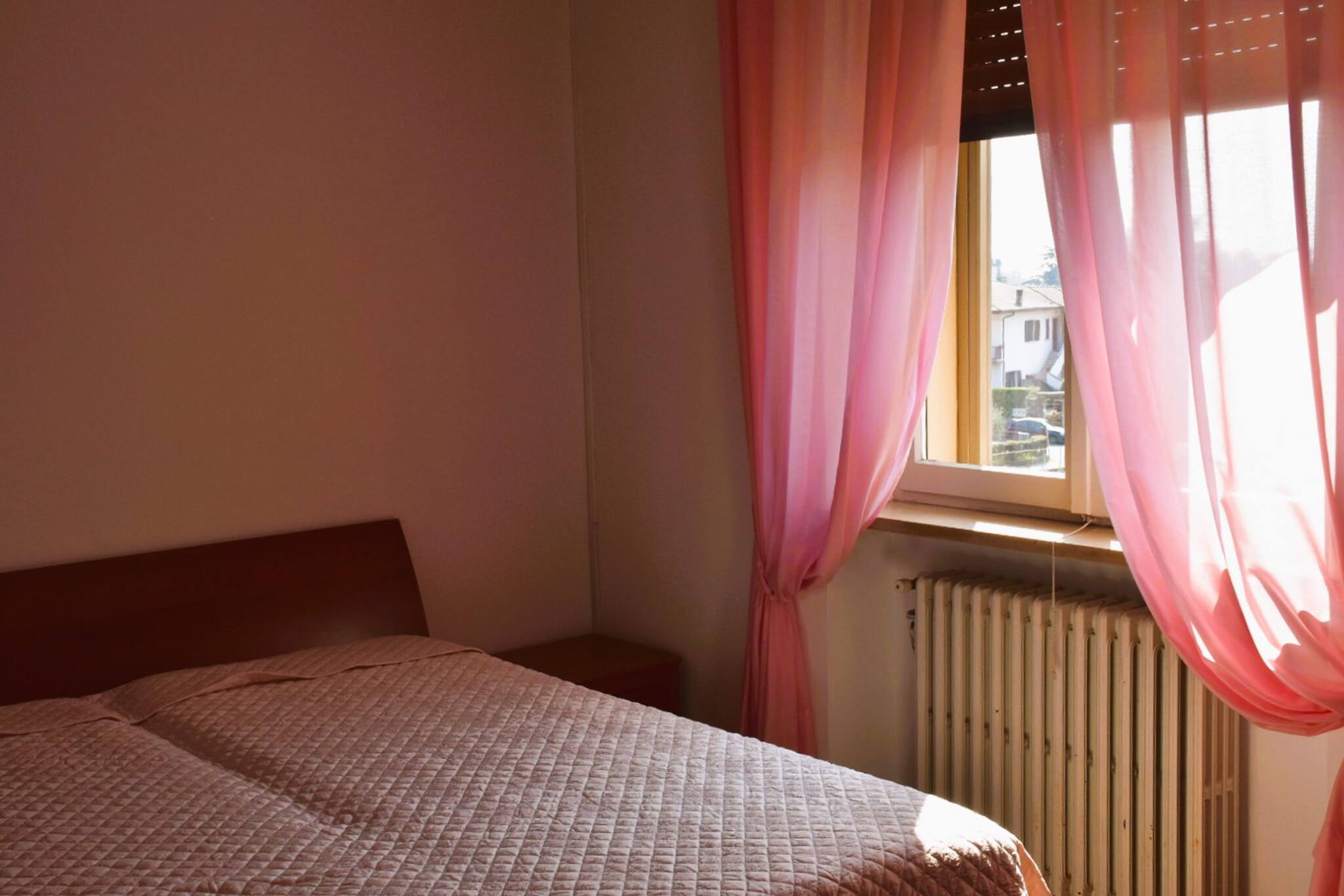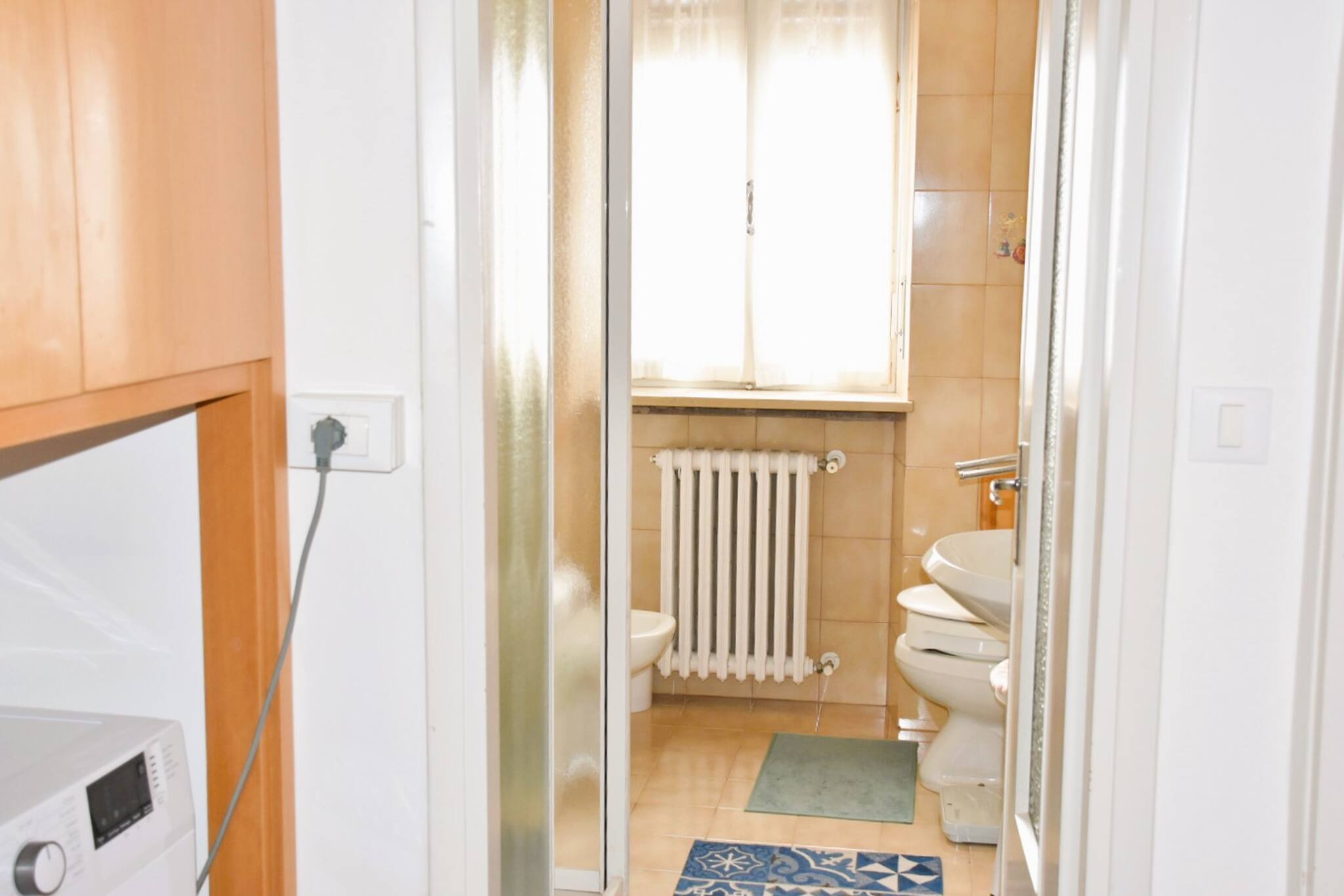 A few hundred metres from the historic centre of Garda, Casa Leopardi is an apartment of approximately 100 sqm in a two-family house: located on the 2nd floor, (38 steps with stair lift for people with disabilities if necessary). Very spacious and bright, the apartment is equipped with double glazing, tiled floors. Entrance with hallway, living room with sofa, armchair, digital terrestrial TV, access to L-shaped terrace equipped with electric blinds and partial view of the Rocca di Garda and the lake. Habitable kitchen with separate cooking area (4 gas hobs, oven, fridge/freezer + separate freezer, microwave, double sink), extendable table and digital terrestrial TV. Bedroom area: washing machine in hidden wardrobe in corridor, master bedroom with digital terrestrial TV (hill view), room with double bed with partial lake view. Bathroom with shower. Safe. Air conditioning with split in entrance and in bedroom area. Bicycles can be stored in the stairwell.
