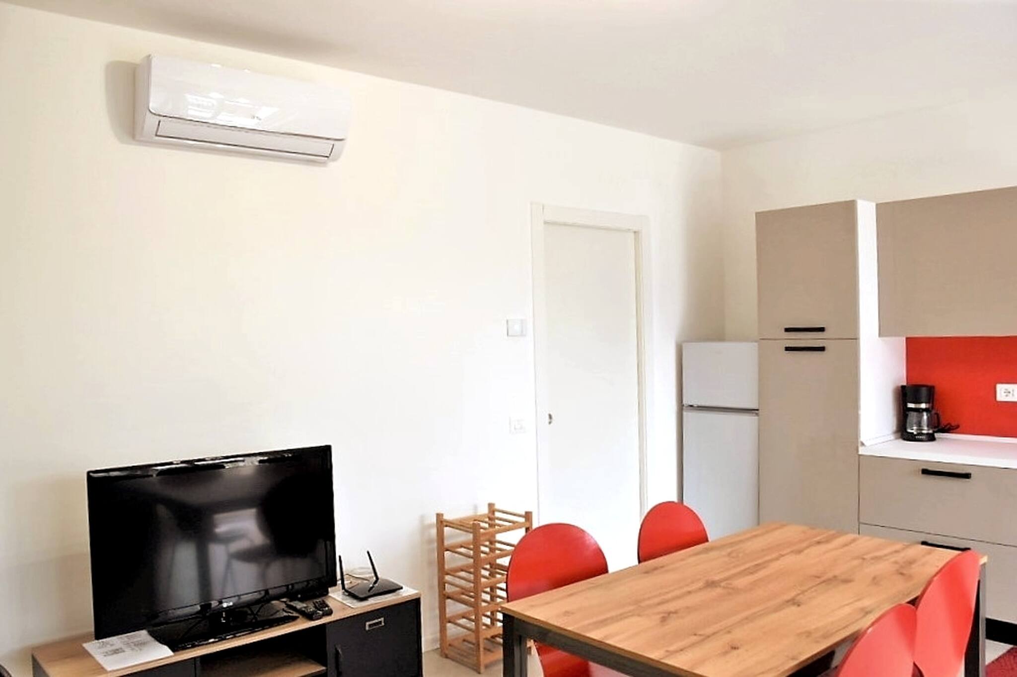 It consists of a kitchen/living room with a sofa bed, a double bedroom and a bathroom with a shower. Air conditioning. -