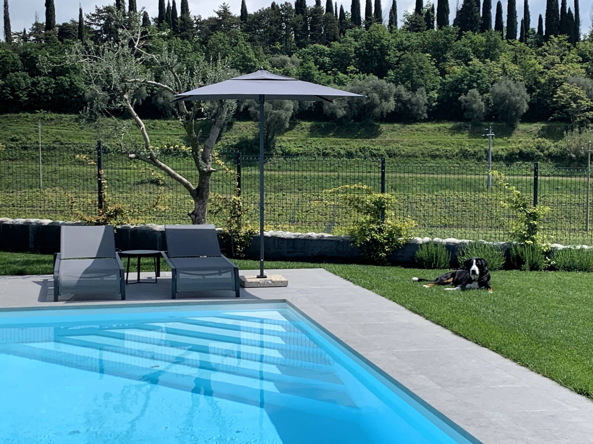The entire villa is available to guests, they can use the private parking spaces, the private pool and the large garden.