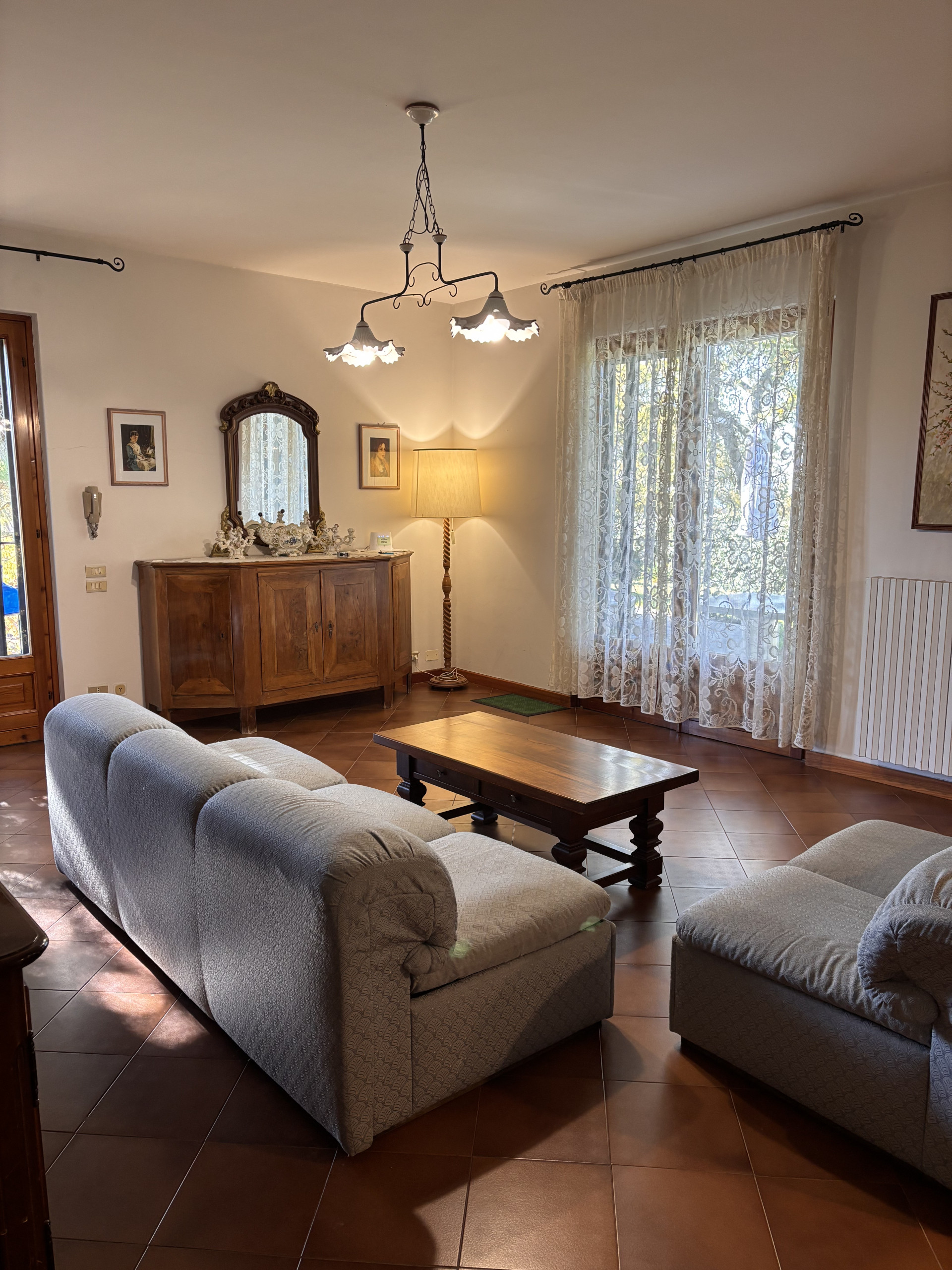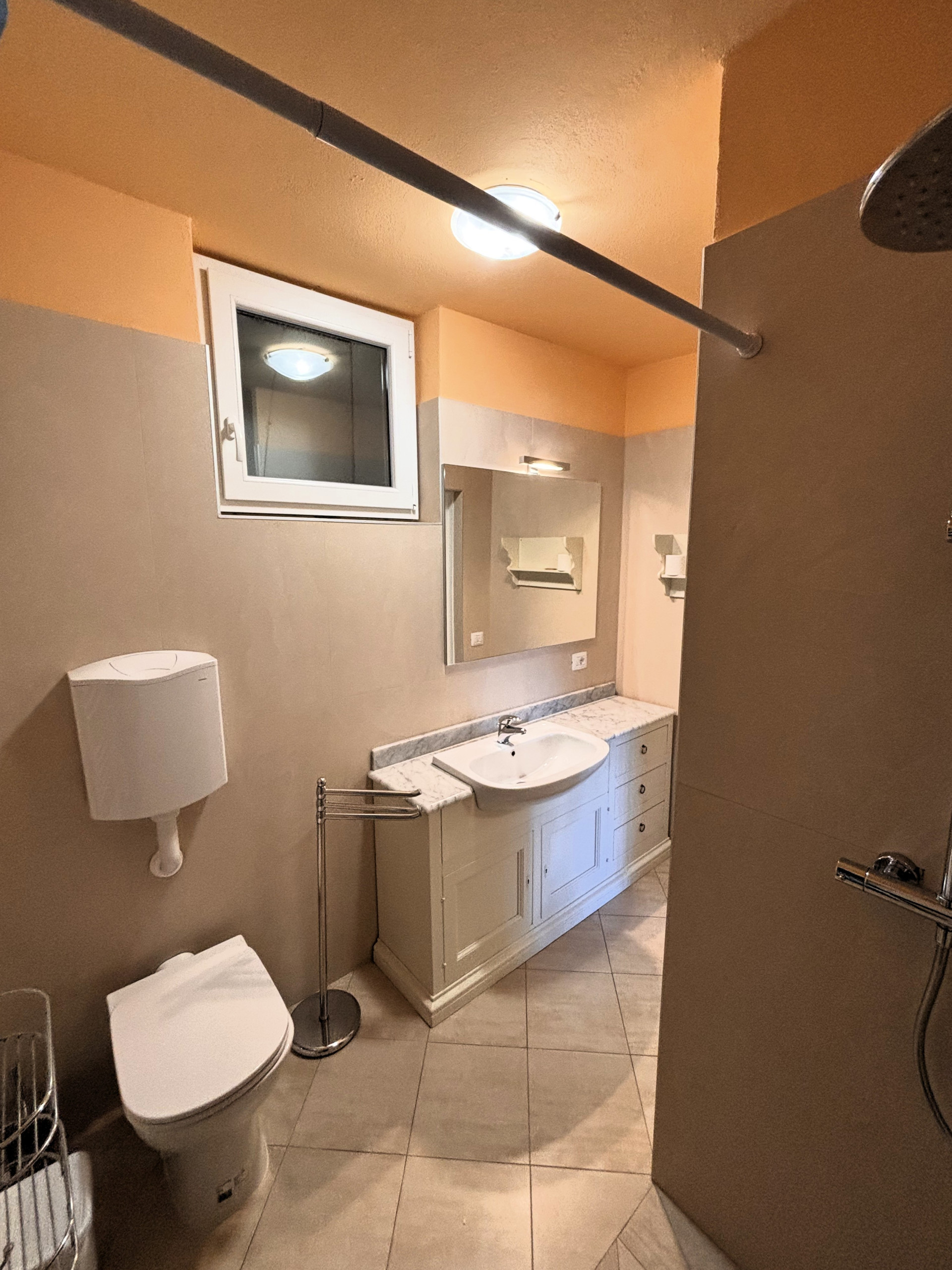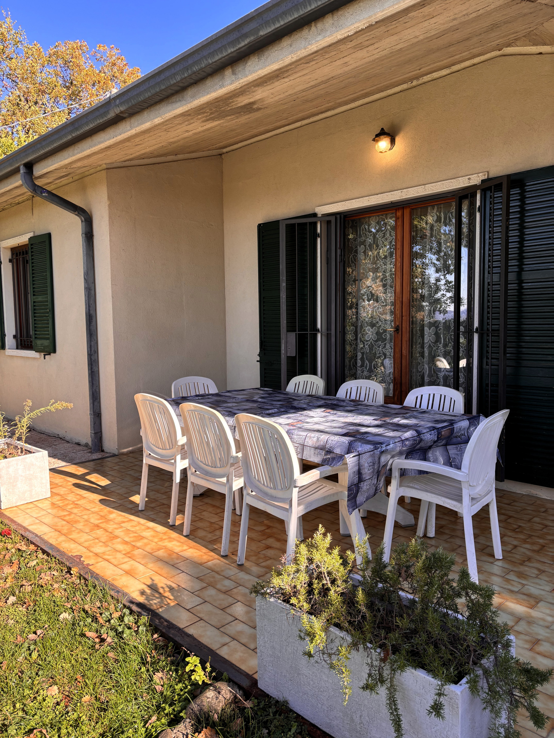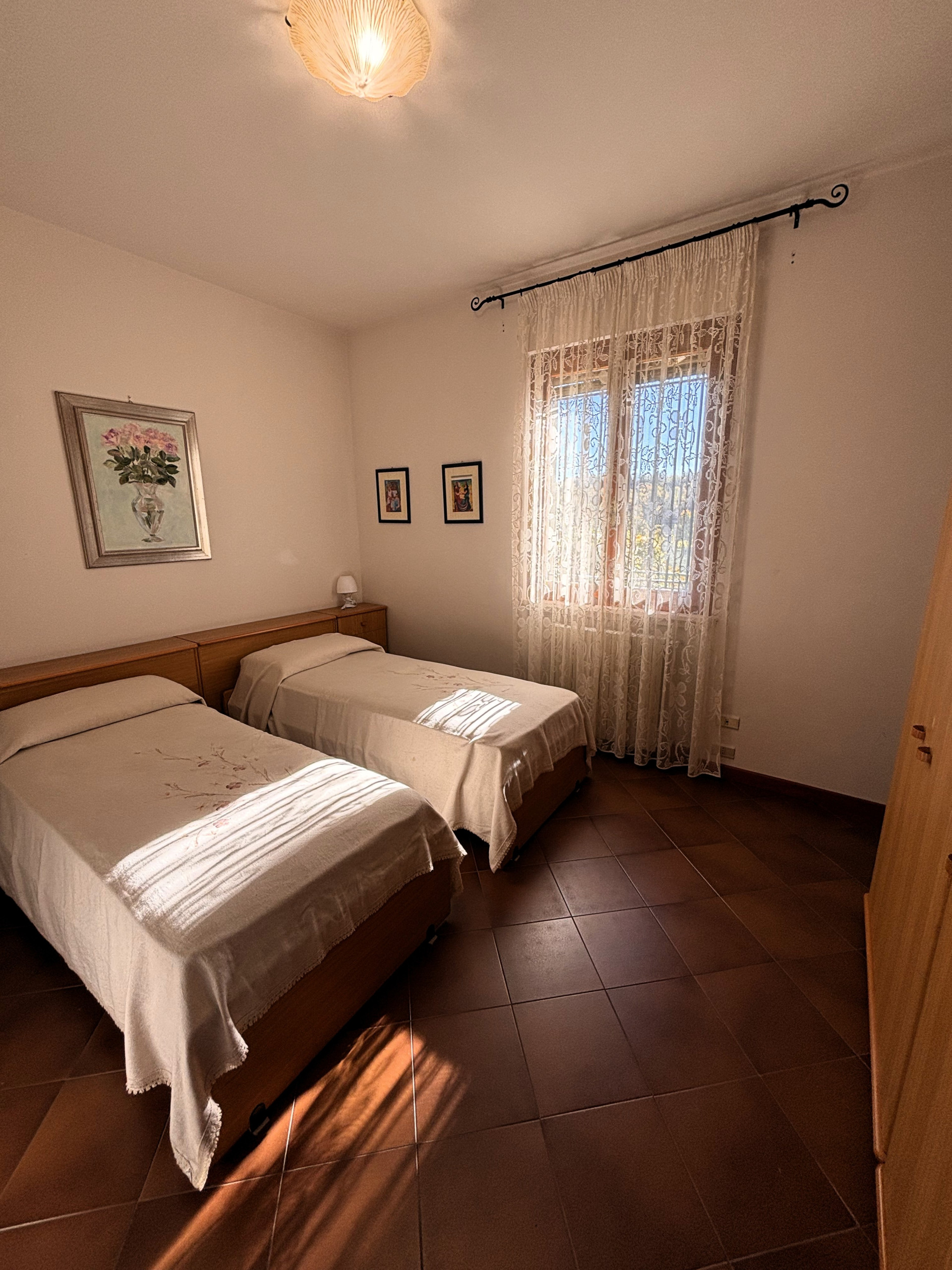 Villa Patrizia was built on a sloping terrain, so from the gate one accesses the green lawn in front of the house and the portico with space for two cars. On the ground floor, from the garden, one can access an independent apartment with a double sofa bed, a small kitchenette and a bathroom with a shower and washing machine.