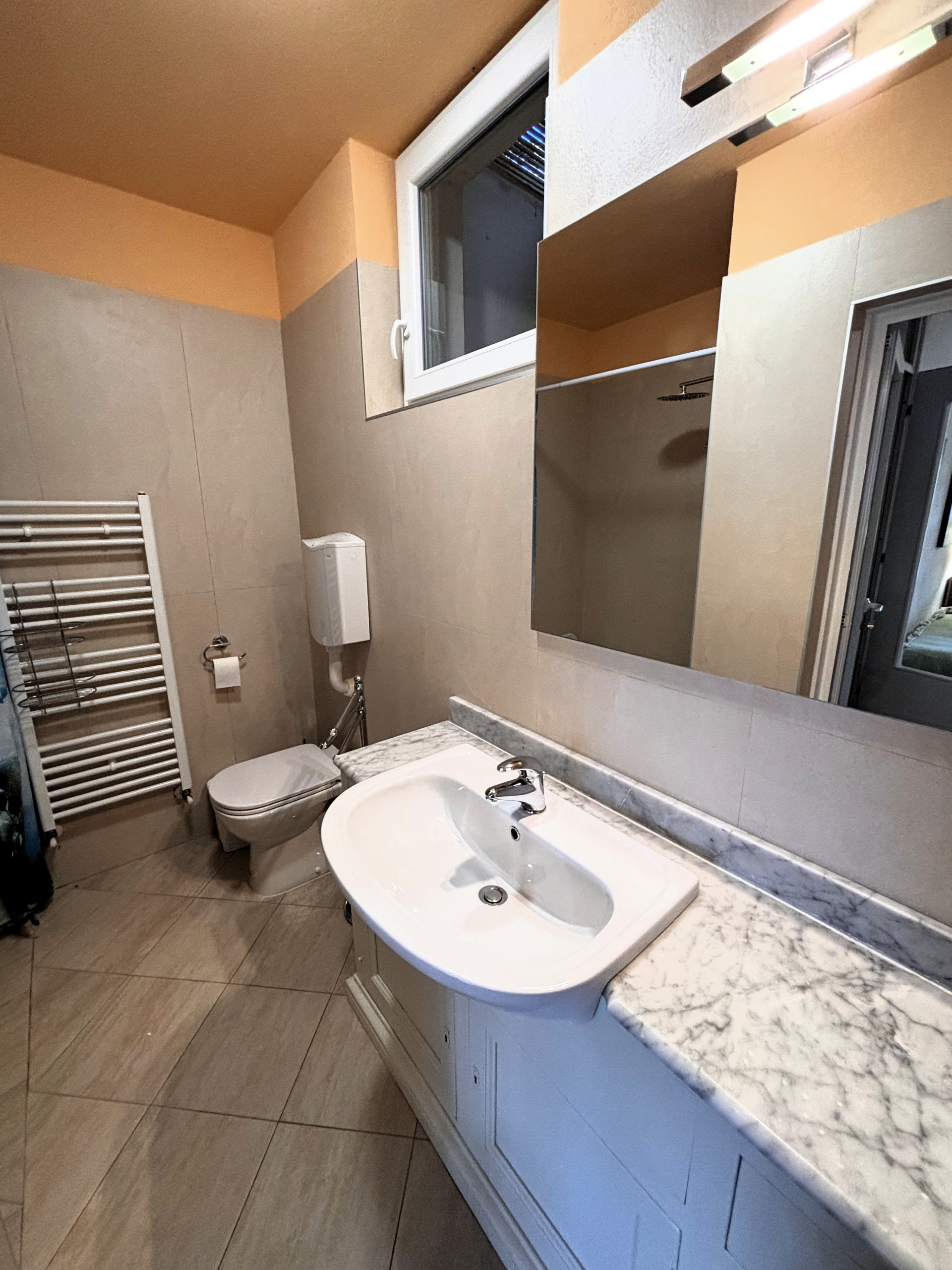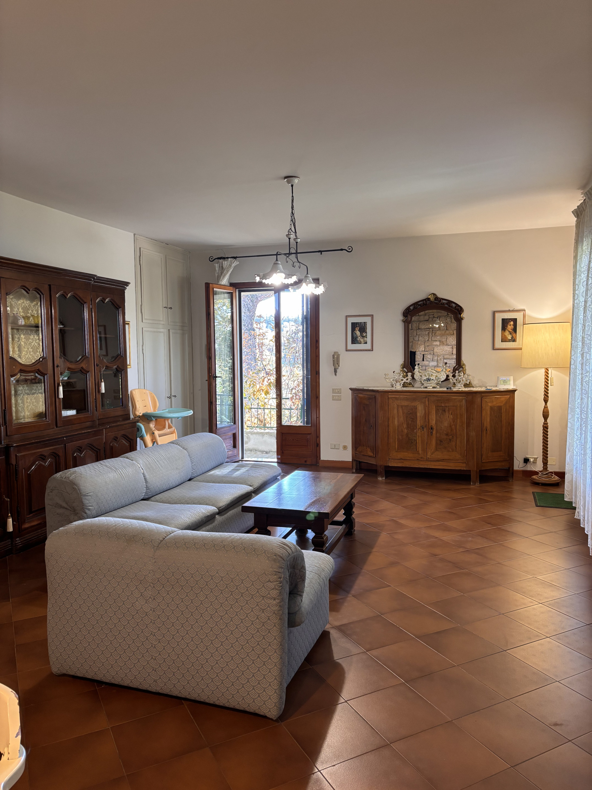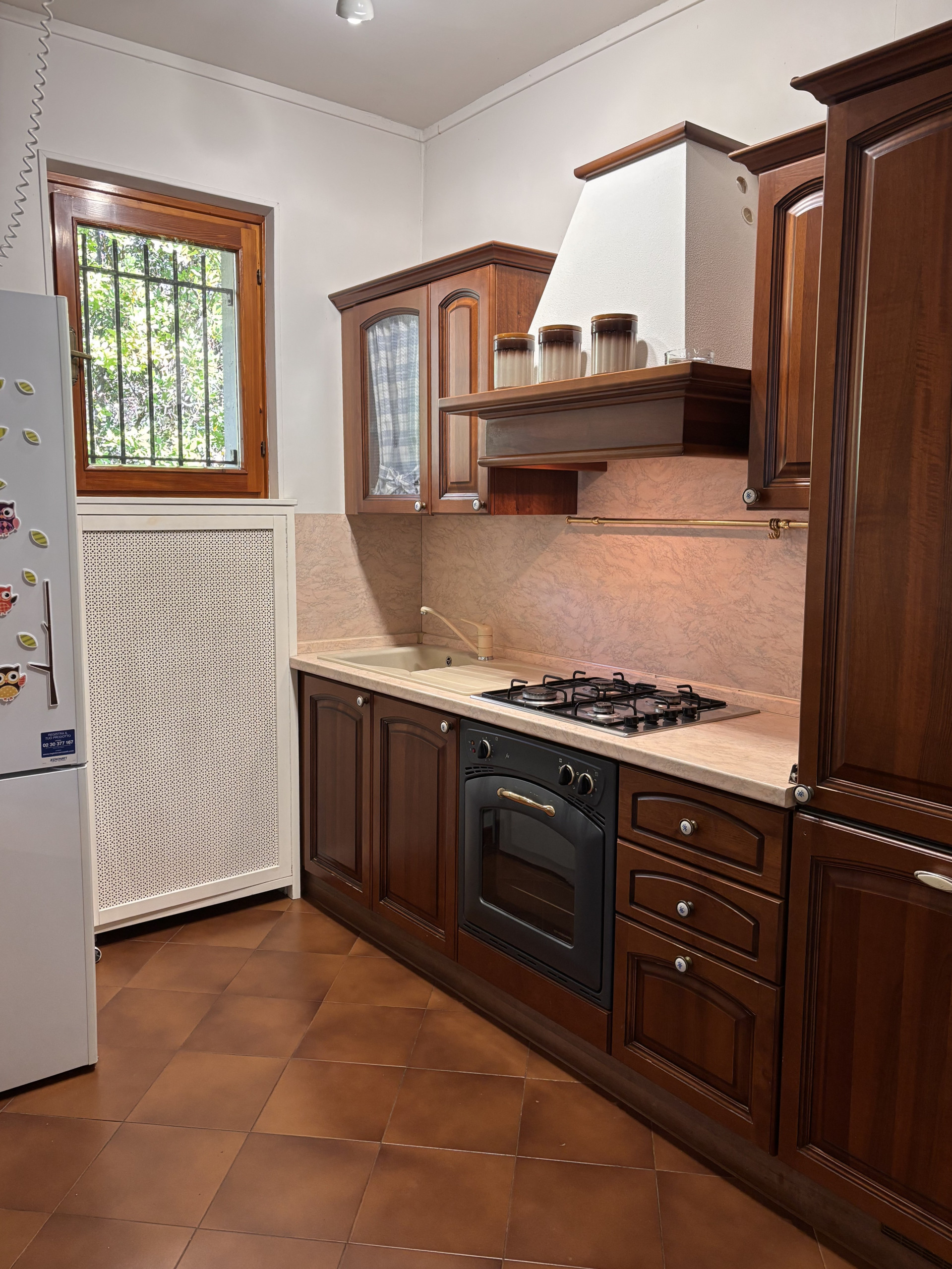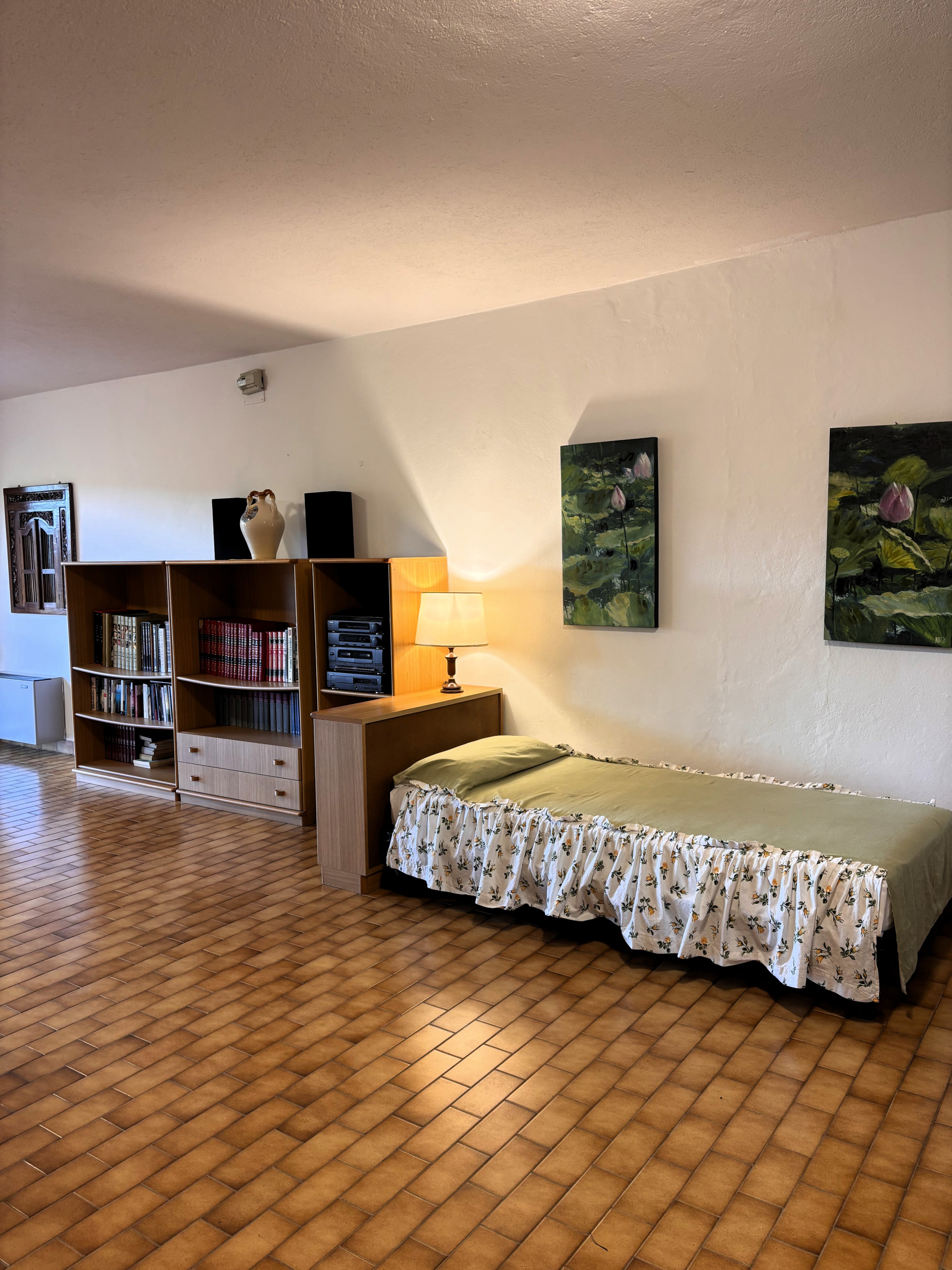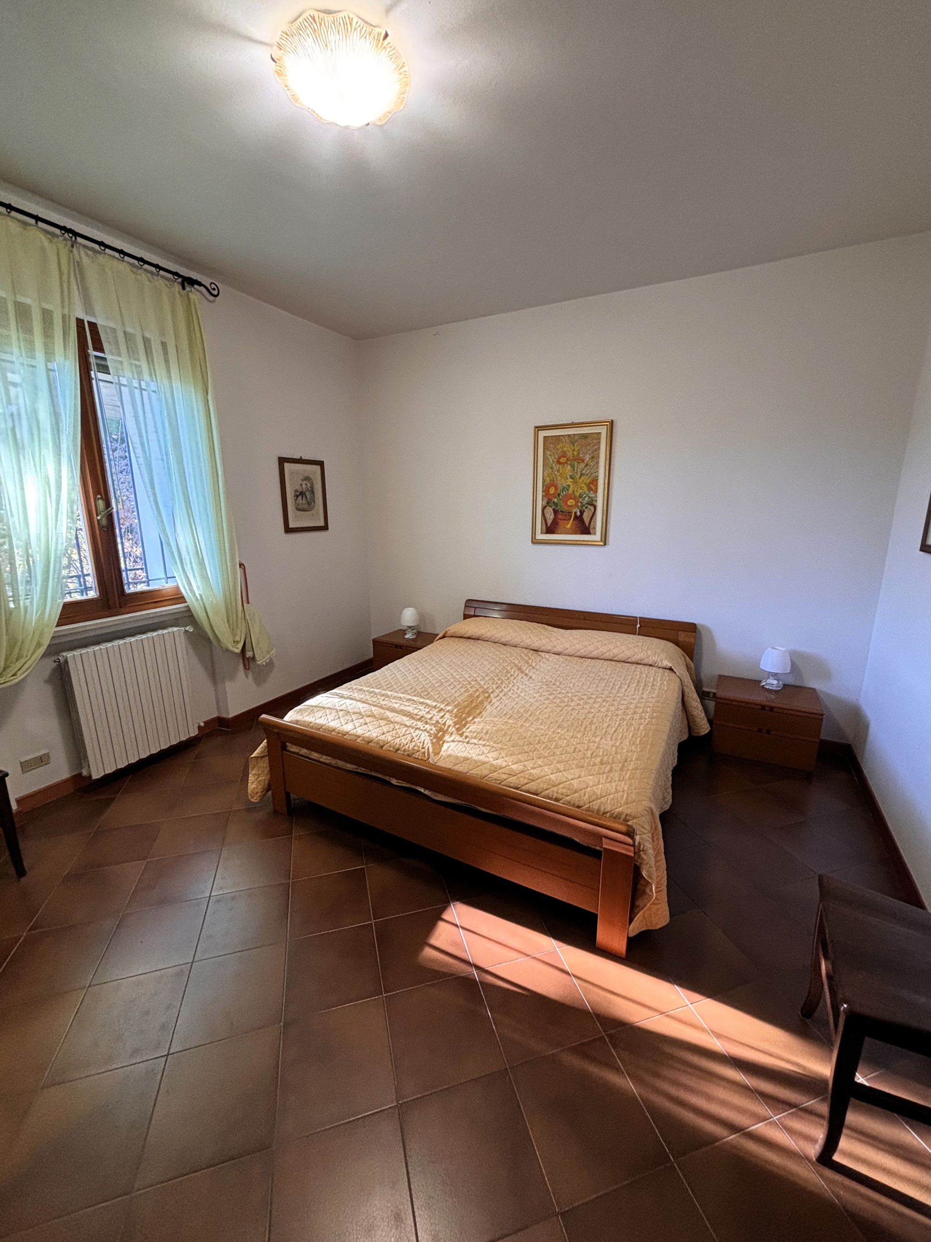 Villa Patrizia was built on a sloping terrain, so from the gate one accesses the green lawn in front of the house and the portico with space for two cars. On the ground floor, from the garden, one can access an independent apartment with a double sofa bed, a small kitchenette and a bathroom with a shower and washing machine.